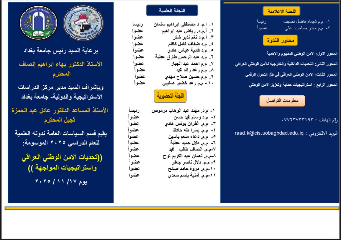 مركز الدراسات الاستراتيجية والدولية في جامعة بغداد يقيم بالتعاون مع كلية العلوم السياسية ندوة علمية عن القمة العربية – العراقية الرابعة والثلاثين